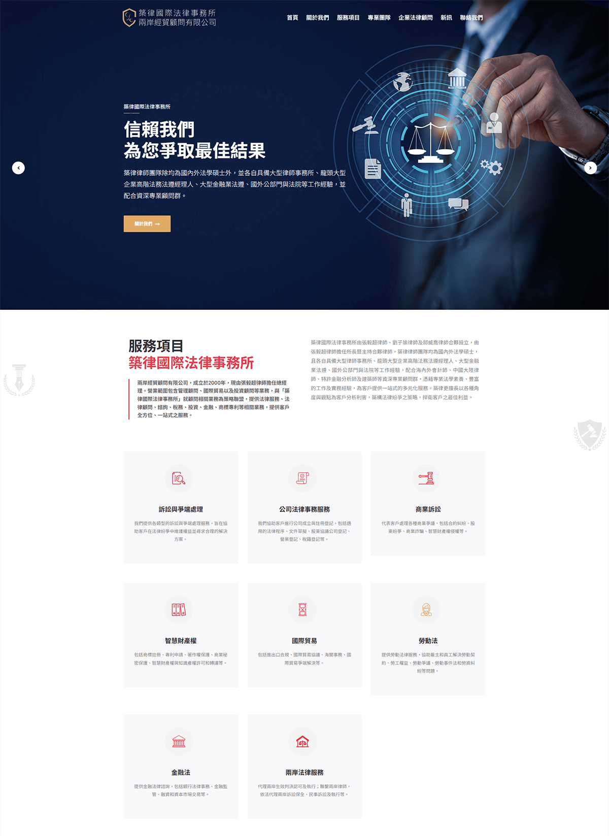 築律律師團隊除均為國內外法學碩士外,並各自具備大型律師事務所、龍頭大型企業高階法務法遵經理人、大型金融業法遵、國外公部門與法院等工作經驗,並配合資深專業顧問群。