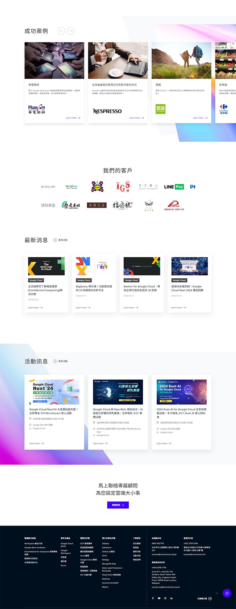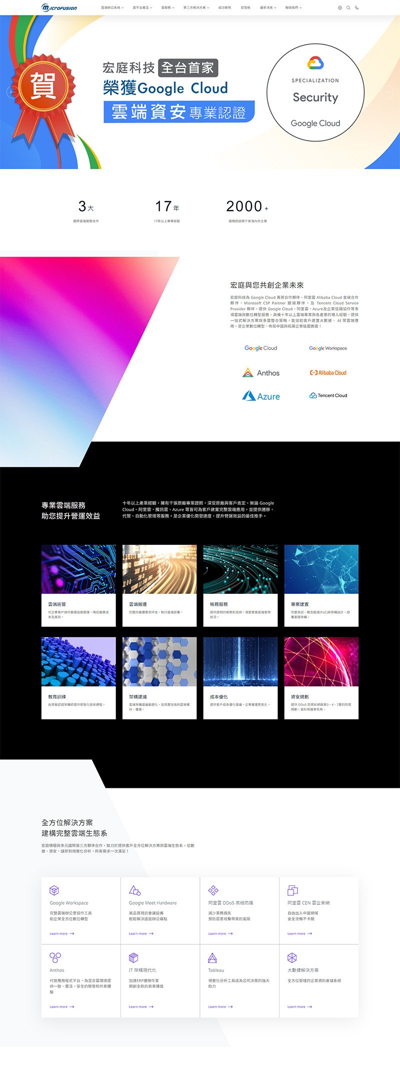 宏庭科技為 Google Cloud 最高等級合作夥伴、阿里雲 Alibaba Cloud 金級合作夥伴、Microsoft CSP Partner 金級夥伴,及 Tencent Cloud Service Provider 夥伴,提供 Google Cloud、阿里雲、Azure 及企業信箱協作等多項雲端與數位轉型服務,具備十年以上雲端專業與各產業的導入經驗,提供一站式解決方案與多雲整合策略,能協助客戶建置大數據、 AI 等雲端應用,是企業數位轉型、佈局中國與拓展企業版圖首選!