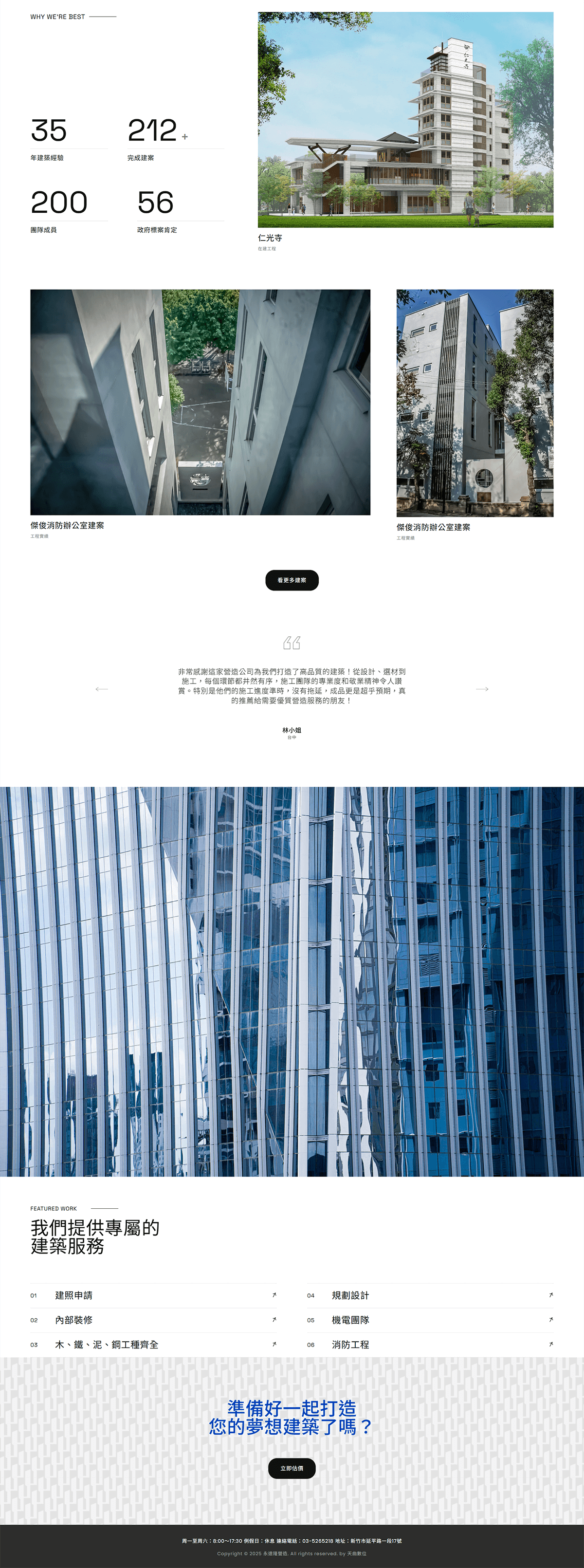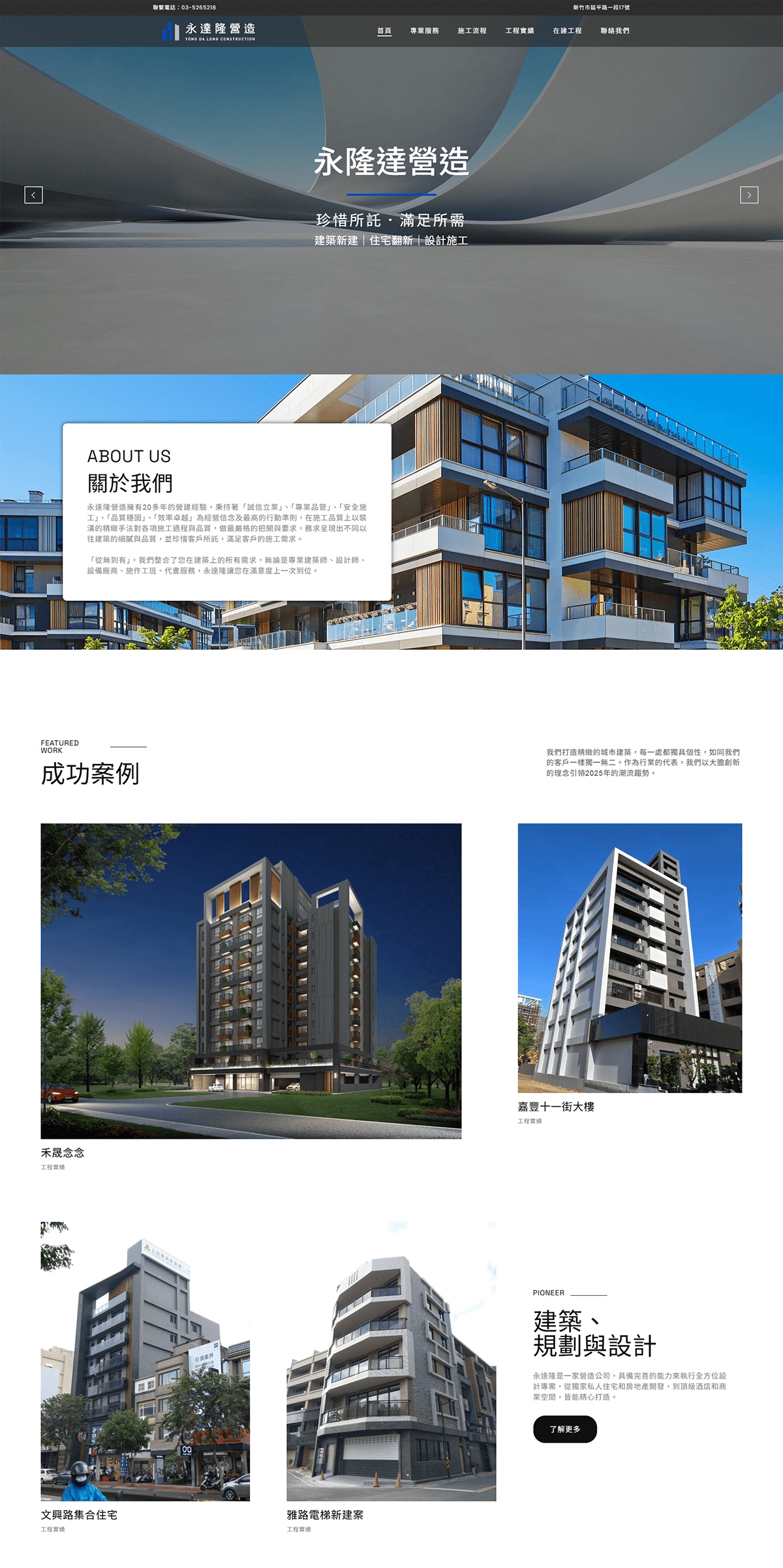 「從無到有」,我們整合了您在建築上的所有需求,無論是專業建築師、設計師、設備廠商、施作工班、代書服務,永達隆讓您在滿意度上一次到位。